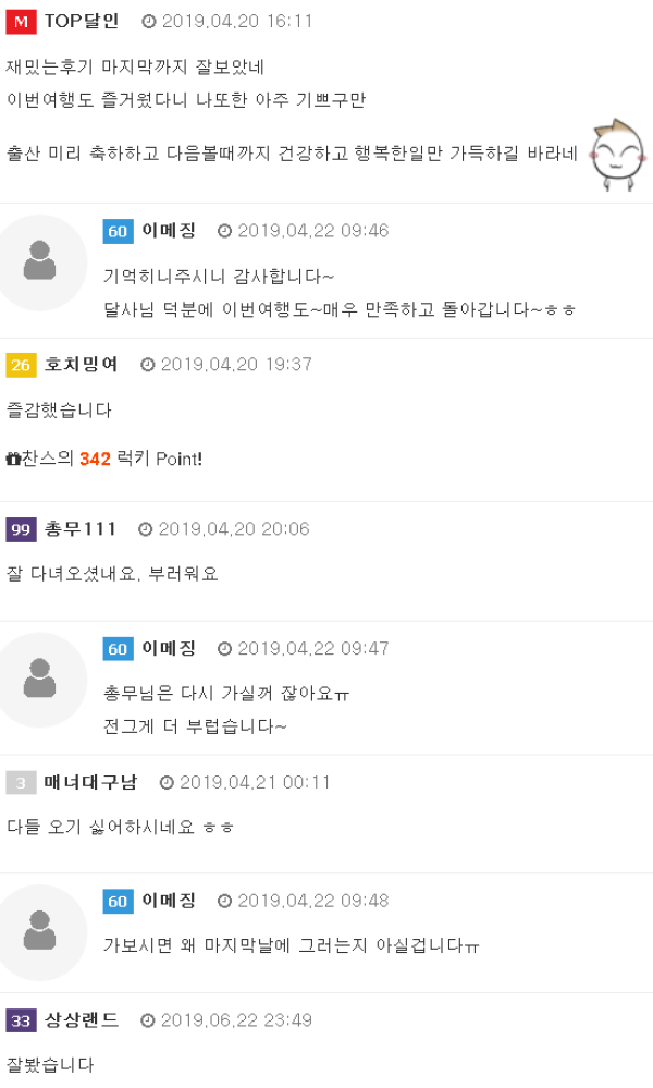 *반갑습니다 아라리입니다~^^ 달인을 알게된지 장장 4년만에 첫 달인여행을 다녀왔습니다. 매일 후기만 읽으며 부러워만하고 있었는데 이제는 제가 후기를 쓰게 됐네요. 모쪼록 제가 후기를 읽으며 많은 즐거움, 기대,부러움을 가졌던것처럼 다녀오신분들보다는 …