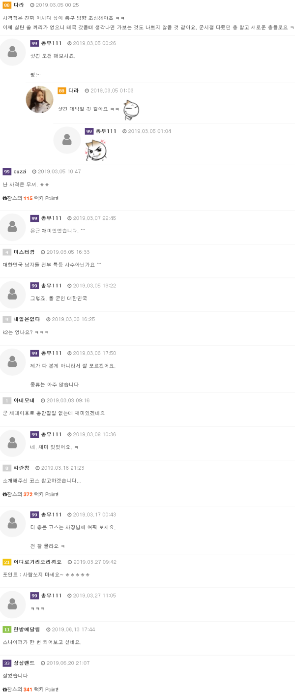 사격은 말 그대로 사격장입니다. 일단 시간은 그리 크게 소모되지 않습니다. 다만, 1. 추억의 회상 (군대..ㅋ) 2. 스트레스 해소 3. 짜투리 시간을 이용해서 즐길 수 있는 장점 이런 것들이…