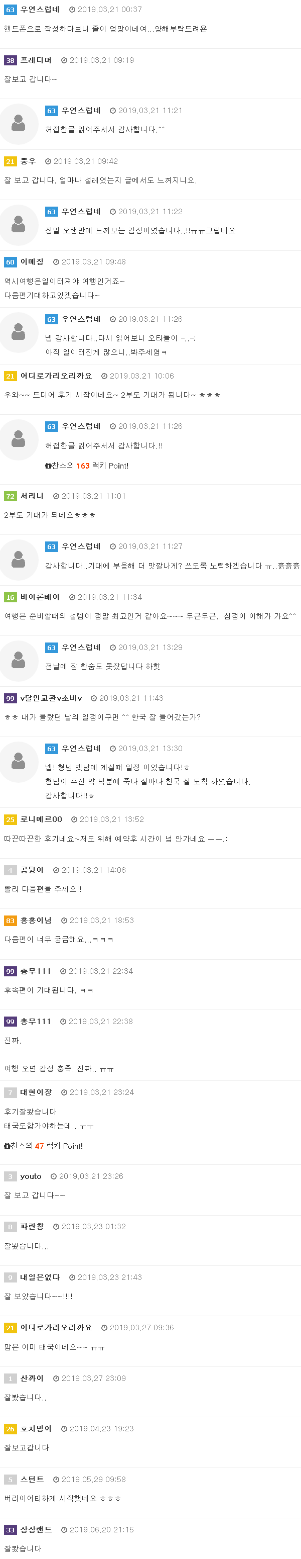 안녕하세요. 우연 입니다.제가 하는일이 관리직이다보니 자리를 비우면 일이 그대로 쌓여있어서 오늘 참 힘든 하루 였습니다. 그러니 태국 생각이 더욱 나구요.흙흙그러나!! 회원님들의 성원에 힘입어!! 2편을 이어가도록 하겠습니당. 감사합니다.+_+둥근해가 떳습니다~ 자리에…